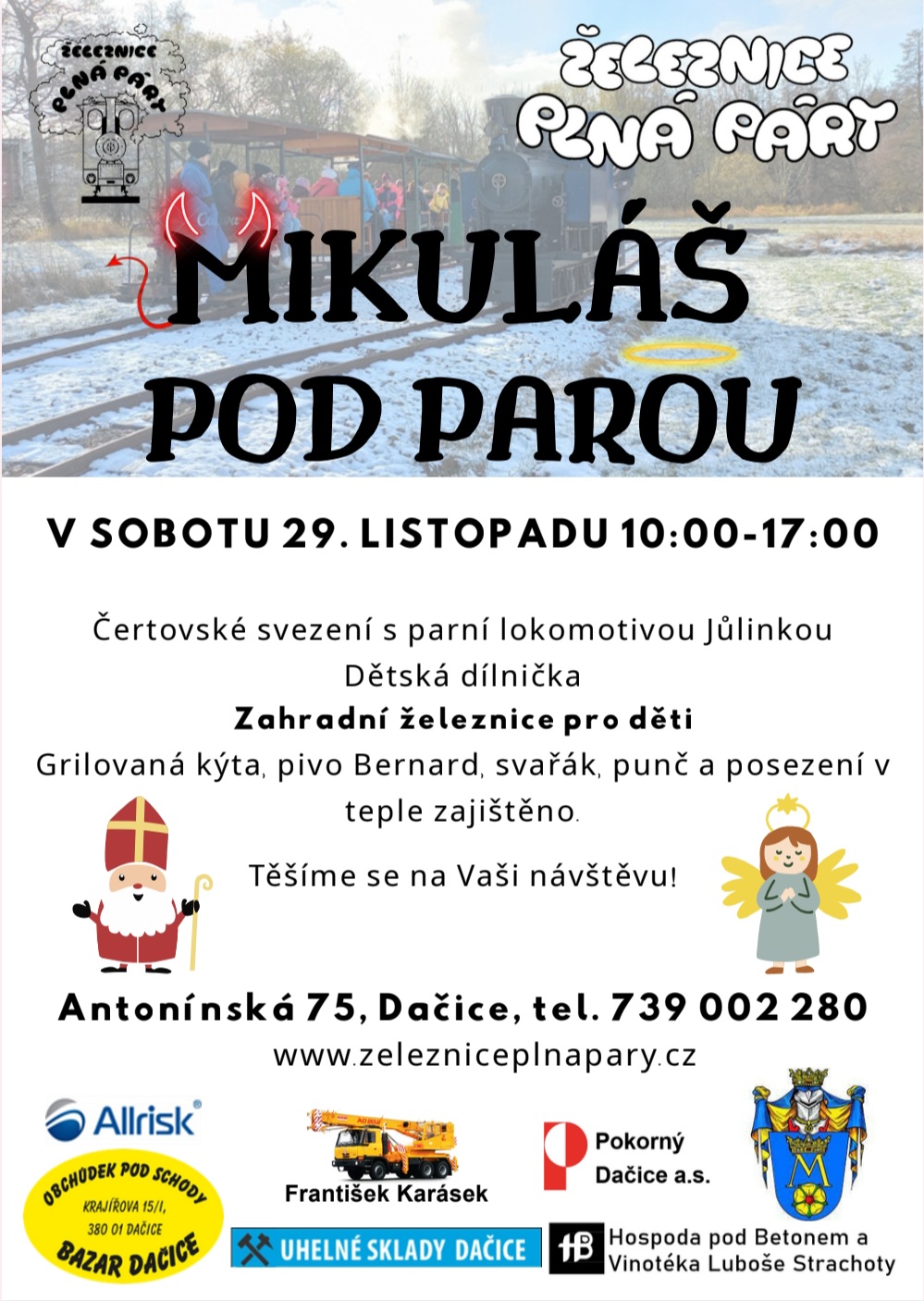 Po telefonické domluvě je možné náš areál navštívit a prohlédnout si ho. Rádi Vás svezeme naším vláčkem, který pro Vás rádi vypravíme. Třikrát do roka pořádáme veřejné akce s parní lokomotivou, o kterých se dozvíte tady na stránkách nebo na našem facebooku či instagramu.